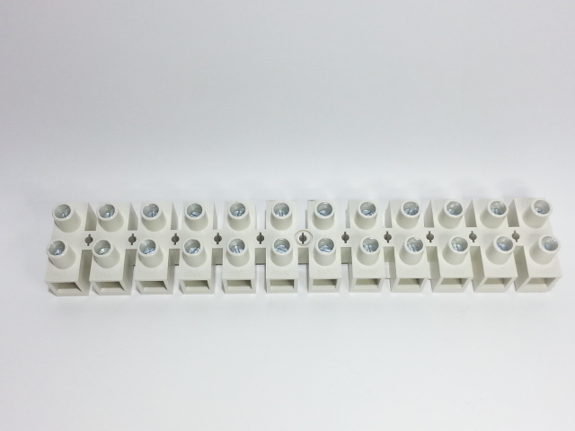 Regleta de conexión. Flexible y de fácil corte. 12 elementos con tornillos imperdibles. UNE-EN 60998-1:1994 + A1:2002 + UNE-EN 60998-2-1:1996 CARACTERISTICAS Color: blanco Temperatura de trabajo: 110º C (UL-V0) Material: poliamida 6 Sección: 10 mm2 Corriente nominal: 41A/57A Dimensiones: A 20 mm / B 170mm / C 26 mm | |