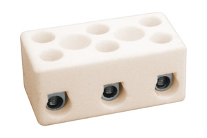 REGLETA DE CERAMICA 3 POLOS 2,5 MM CARACTERISTICAS TECNICAS Nº de polos: 3 Tensión nominal: 250 VAC Corriente nominal: 16A Dimensiones: A 19mm B 31mm C 16mm Temperatura máxima de bornes: 350 ºC material de bornes: latón cincado Temperatura máxima del cuerpo: 900 ºC Material del cuerpo: ceramica Tipo de sujección: a tornillo | |
